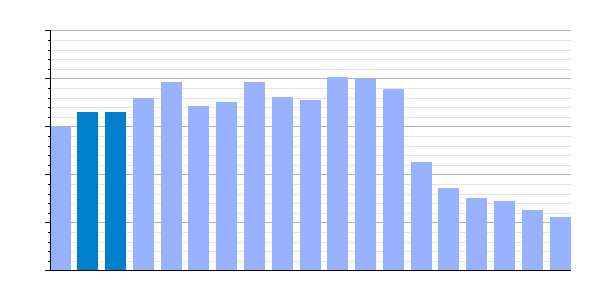 Gráfica de evolución demográfica de Cordovilla[6] entre 1842 y 2021