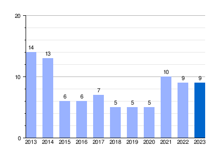 Gráfica de evolución demográfica de Aguaderico Tercero entre 2013 y 2023 |