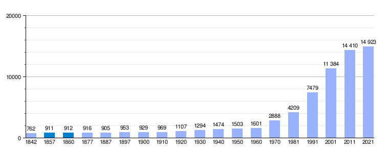 | Gráfica de evolución demográfica de Palau-Solità i Plegamans[8] entre 1842 y 2021 |