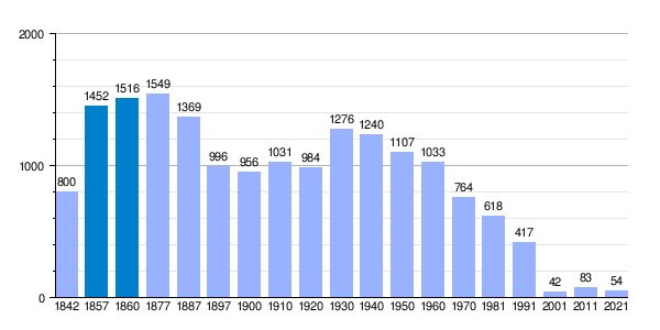 | Gráfica de evolución demográfica de Darrícal[1] entre 1842 y 2021 |