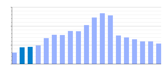 | Gráfica de evolución demográfica de Torrecillas de la Tiesa[8] entre 1842 y 2021 |