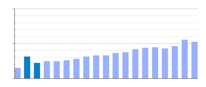 Gráfica de evolución demográfica de Alberique[7] entre 1842 y 2021