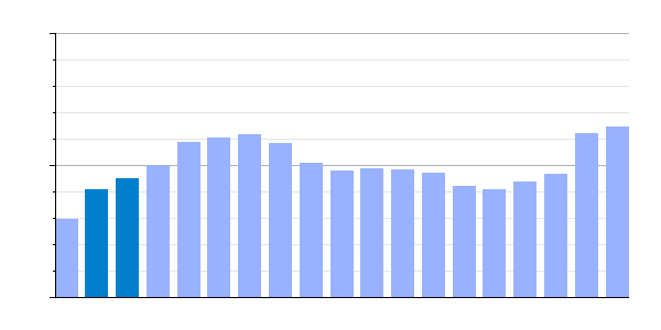 Gráfica de evolución demográfica de Alborache[13] entre 1842 y 2021