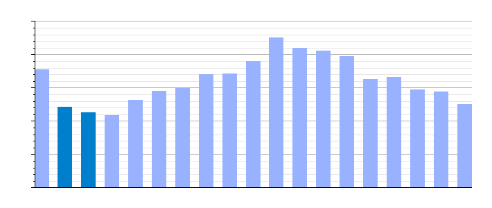 | Gráfica de evolución demográfica de Alcuéscar[6] entre 1842 y 2021 |