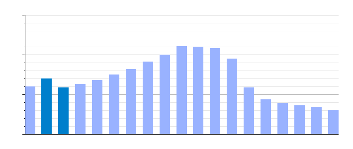 Gráfica de evolución demográfica de Aldea del Cano[5] entre 1842 y 2021