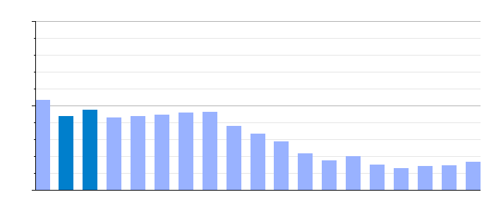 Gráfica de evolución de Deuda viva del Ayuntamiento entre 2008 y 2019