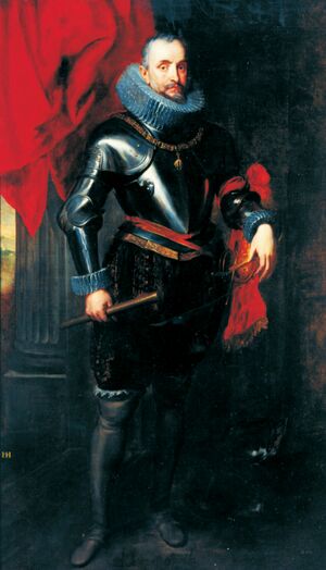 Por último, el Museo de Bellas Artes de Valencia cuenta con el Retrato Ecuestre de Don Francisco de Moncada[60], obra realizada hacia 1634 que muestra a Francisco de Moncada, III marqués de Aytona, entonces gobernador de los Países Bajos de los Habsburgo..