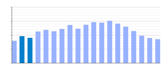 Gráfica de evolución demográfica de Arenas de Iguña[7] entre 1842 y 2021