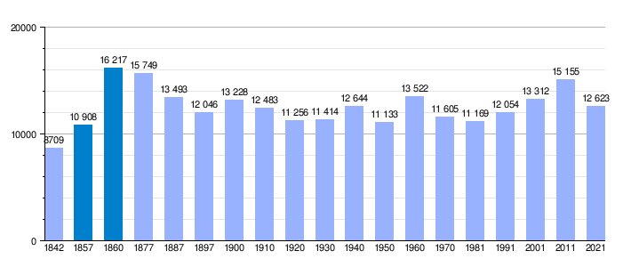 | Gráfica de evolución demográfica de Berja[6] entre 1842 y 2021 |