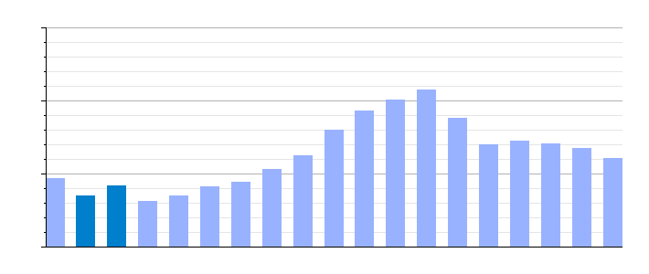 Gráfica de evolución de la deuda viva del Ayuntamiento entre 2008 y 2019