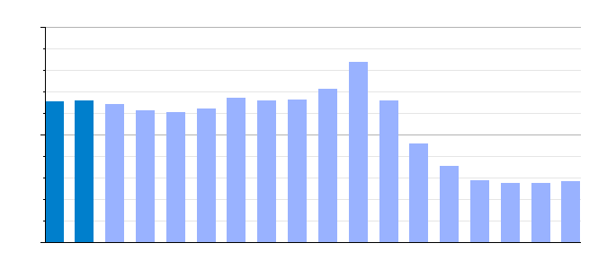 | Gráfica de evolución demográfica de Capileira[5] entre 1857 y 2021 |