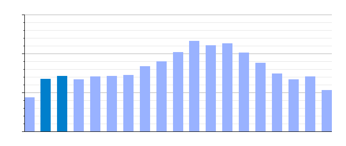 Gráfica de evolución demográfica de Casar de Palomero[4] entre 1842 y 2021