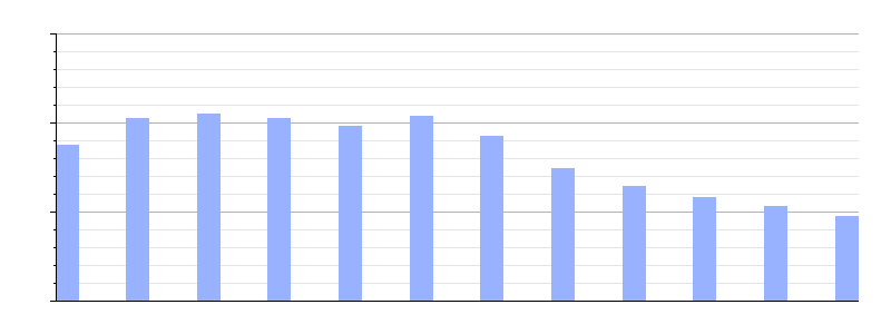 Gráfica de evolución de la deuda viva del Ayuntamiento entre 2008 y 2019