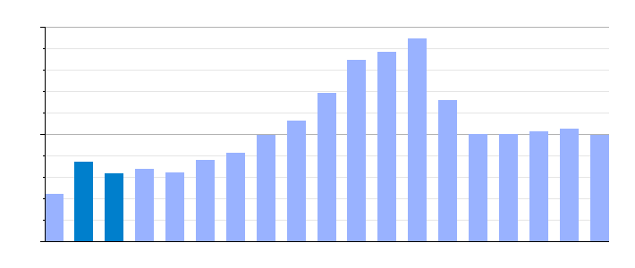 Gráfica de evolución de la deuda viva del Ayuntamiento entre 2008 y 2020