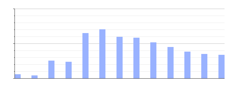 Gráfica de evolución demográfica de Cortes y Graena[5] entre 1842 y 2021