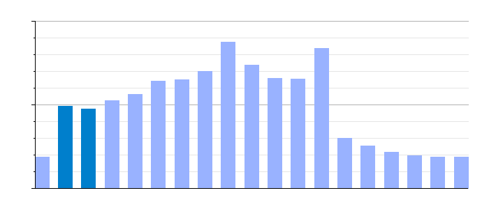 Gráfica de evolución demográfica de Fayón[11] entre 1842 y 2021
