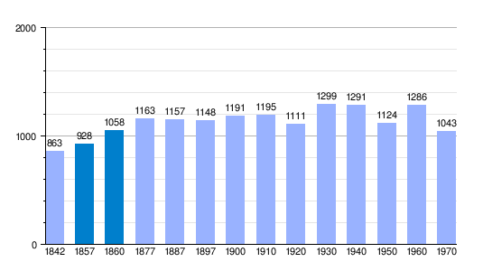 | Gráfica de evolución demográfica de Guájar Faragüit[1] entre 1842 y 1970 |