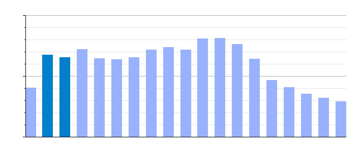 Gráfica de evolución demográfica de Herrerías[2] entre 1842 y 2021