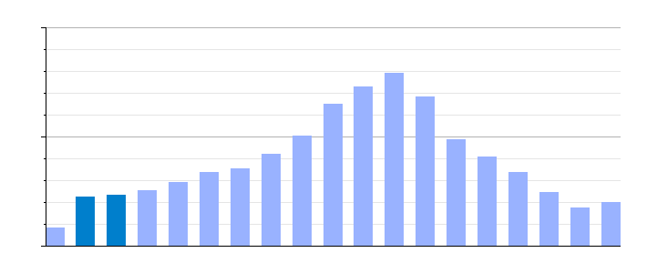 | Gráfica de evolución demográfica de Huélago[2] entre 1842 y 2021 |