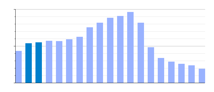 Gráfica de evolución demográfica de Ibdes[5] entre 1842 y 2021