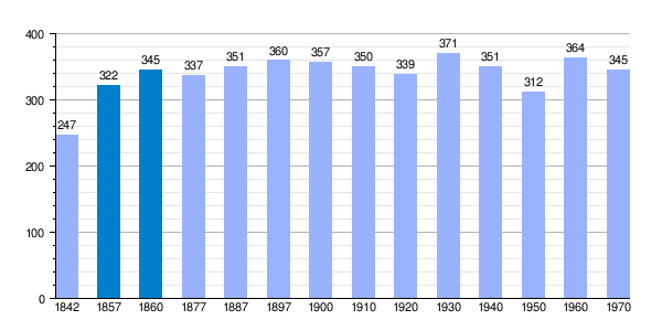 Gráfica de evolución demográfica de Iruña[3] entre 1842 y 1970