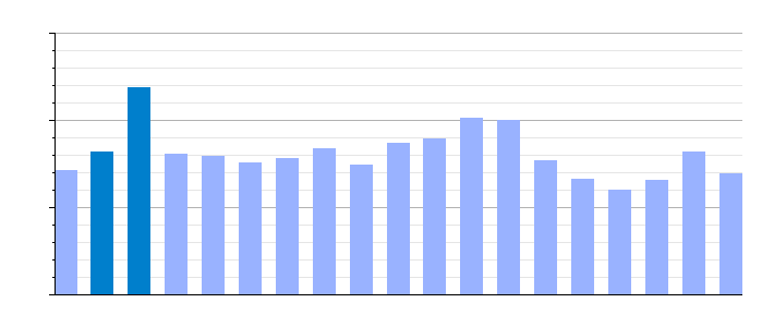 Gráfica de evolución demográfica de Jadraque[5] entre 1842 y 2021