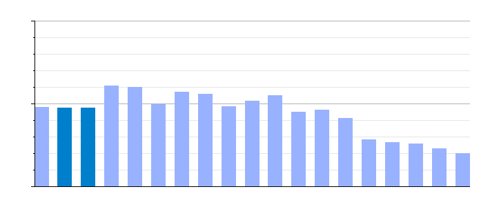 Gráfica de evolución de la deuda viva del Ayuntamiento entre 2008 y 2019