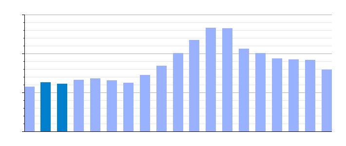 | Gráfica de evolución demográfica de La Alberca de Záncara[4] entre 1842 y 2021 |