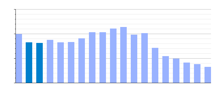 Gráfica de evolución de la deuda viva del Ayuntamiento entre 2008 y 2019