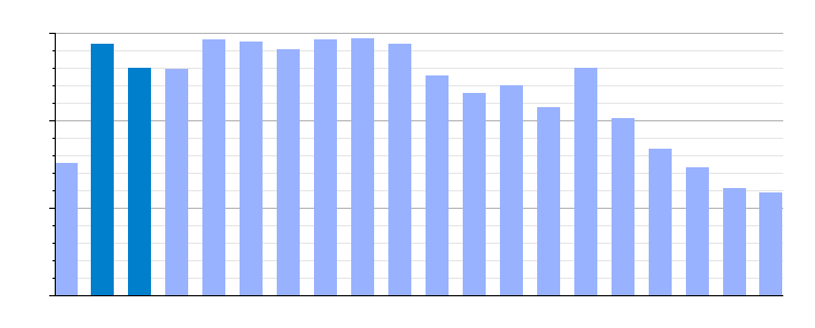 | Gráfica de evolución demográfica de La Gudiña[5] entre 1842 y 2023 |