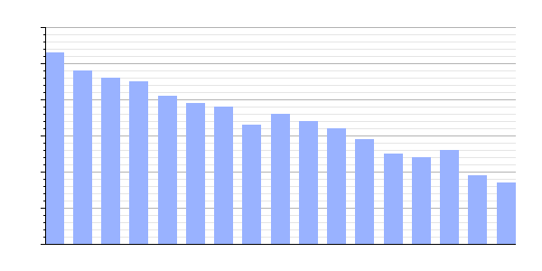 | Gráfica de evolución demográfica de La Pared (Albacete)[1] entre 2000 y 2017 |