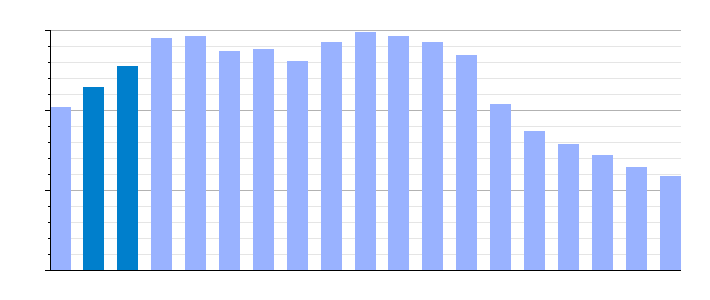 Gráfica de evolución demográfica de La Peza[6] entre 1842 y 2021