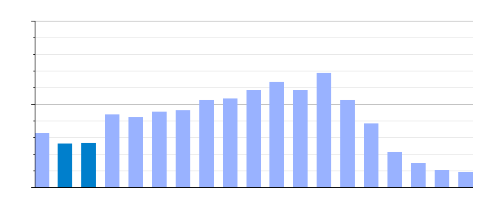 Gráfica de evolución demográfica de Ladrillar[3] entre 1842 y 2021