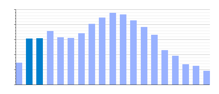 Gráfica de evolución demográfica de Layana[4] entre 1842 y 2021