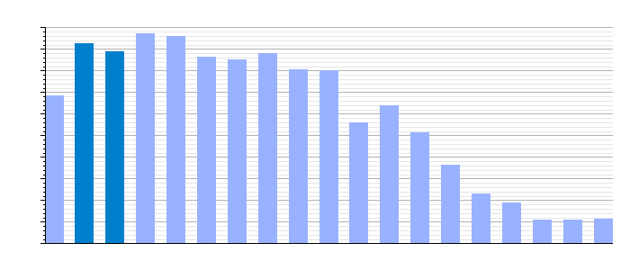 Gráfica de evolución demográfica de Ledanca[4] entre 1842 y 2021