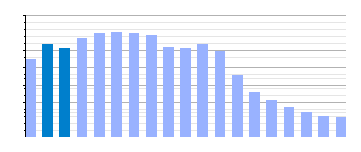Gráfica de evolución demográfica de Los Olmos[3] entre 1842 y 2021
