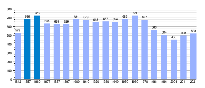 | Gráfica de evolución demográfica de Mañaria[4] entre 1842 y 2021 |