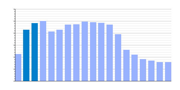 | Gráfica de evolución demográfica de Mainar[6] entre 1842 y 2021 |