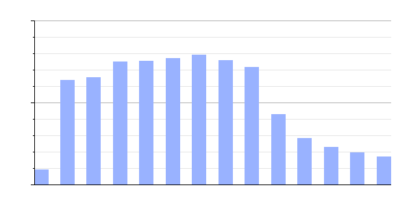Gráfica de evolución demográfica de Manzanal de Arriba[14] entre 1842 y 2021