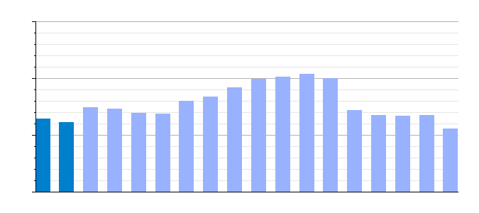 | Gráfica de evolución demográfica de Montillana[7] entre 1857 y 2021 |