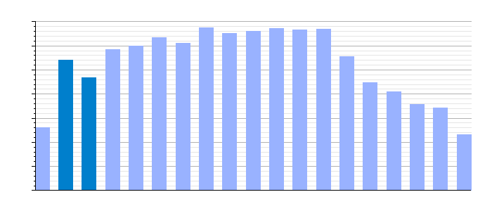 Gráfica de evolución demográfica de Moralina[14] entre 1842 y 2021