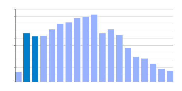 Gráfica de evolución demográfica de Moreruela de Tábara[9] entre 1842 y 2021