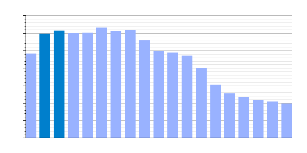 Gráfica de evolución demográfica de Nava del Rey[4] entre 1842 y 2021