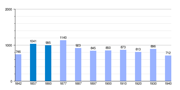 Gráfica de evolución demográfica de Olías[1] entre 1842 y 1940
