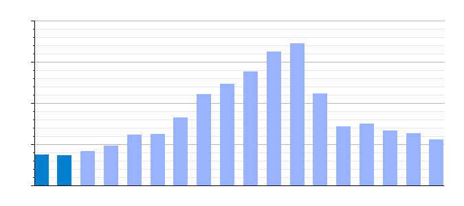 | Gráfica de evolución de la deuda viva del Ayuntamiento entre 2008 y 2023 |