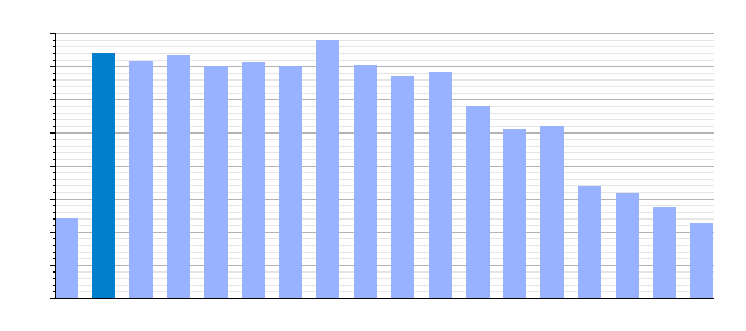 Gráfica de evolución demográfica de Palacios de Sanabria[10] entre 1842 y 2021
