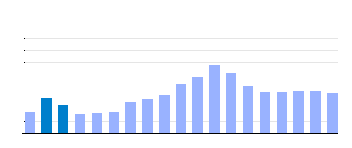 Gráfica de evolución demográfica de Palomas[4] entre 1842 y 2021