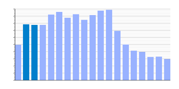 Gráfica de evolución demográfica de Pobladura del Valle[9] entre 1842 y 2021