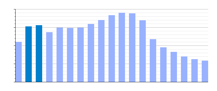 | Gráfica de evolución demográfica de Puebla de Alcocer[6] entre 1842 y 2021 |