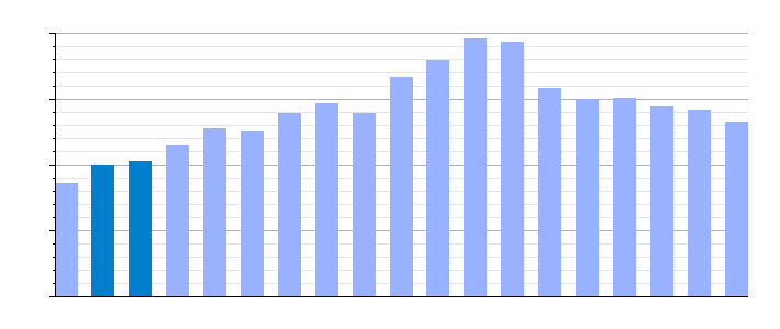 Gráfica de evolución demográfica de Puebla de Sancho Pérez[7] entre 1842 y 2021